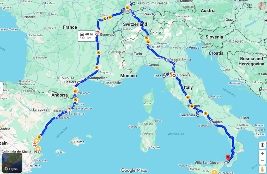 We have stopped in a number of places to see, pray and receive, but yesterday was the most focused of days. We had been given a word about taking time at a border for there we would receive for the ongoing journey and receive some kind of partnership with angels. Borders: Spain to France; France to Germany; Germany to Switzerland; Switzerland to Italy; and of course ‘smaller’ borders between provinces and the sea border between Italy mainland and Sicily is yet to come. So which border?