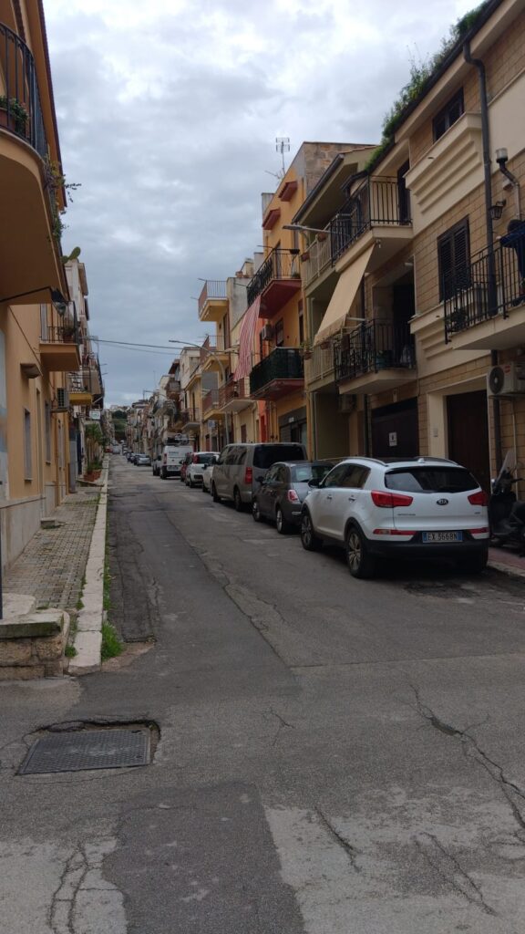 Nothing too hostile but an interesting place. The ‘host’ for our B&B was a throw back from the 60s (hippy era) and we entered our room to him and his ‘friends’ in a very heated discussion(!!!???) that indicated a certain amount of alcohol and whatever else had been present in the previous hours! The street I photograph is typical of many historic towns in Italy and also Spain. A very intense evening for us with not a lot of sleep involved but prayer and processing. We left Balestrate this morning but with our host opening his arms and ‘Sicily welcomes you’. We take that.